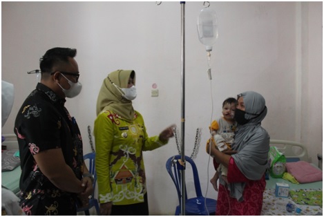 PJ Bupati Lisda Arriyani, S.Sos beserta Direktur RSUD Jaraga Sasameh dan saat mengunjungi ke ruang Ramin RSUD Jaraga Sasameh saat perawatan pasien bibir