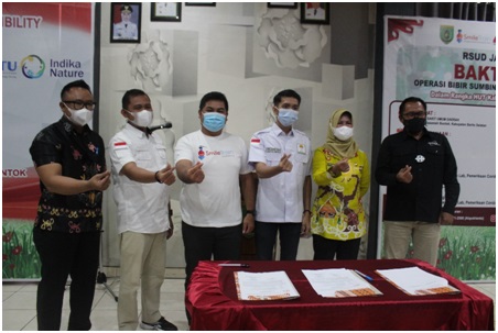 Penandatangan PJ Bupati Barsel, Direktur RSUD Jaraga Sasameh, Smile Train, HIPMI KalTeng, PT. MUTU dan Kadin saat pemberian Oksygen Generator