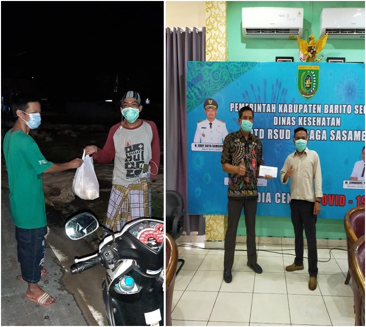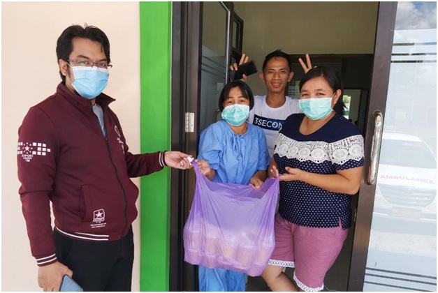 Bantuan yang diterima berupa APD, vitamin, makanan dan minuman bergizi untuk tenaga kesehatan yang sedang di isolasi di ruang isolasi RSUD Jaraga Sasameh.