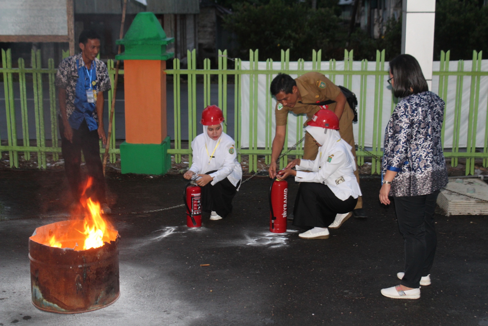 Simulasi penanganan bahaya kebakaran ( code red ) di RSUD Jaraga Sasameh dipraktekkan langsung oleh peserta IHT, di dampingi langsung oleh narasumber dan didampingi oleh Direktur & Ketua Akreditasi di halaman RSUD Jaraga Sasameh.