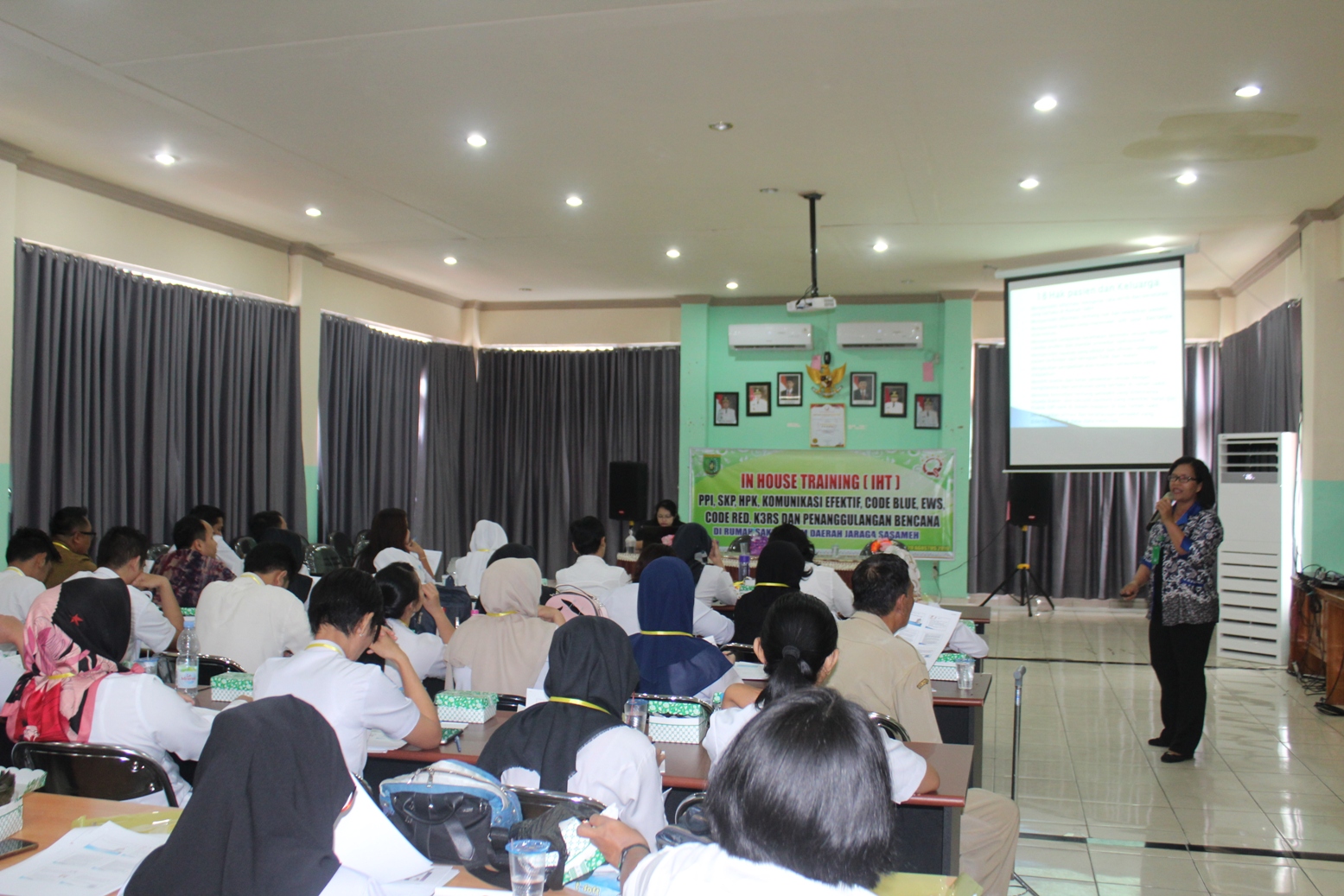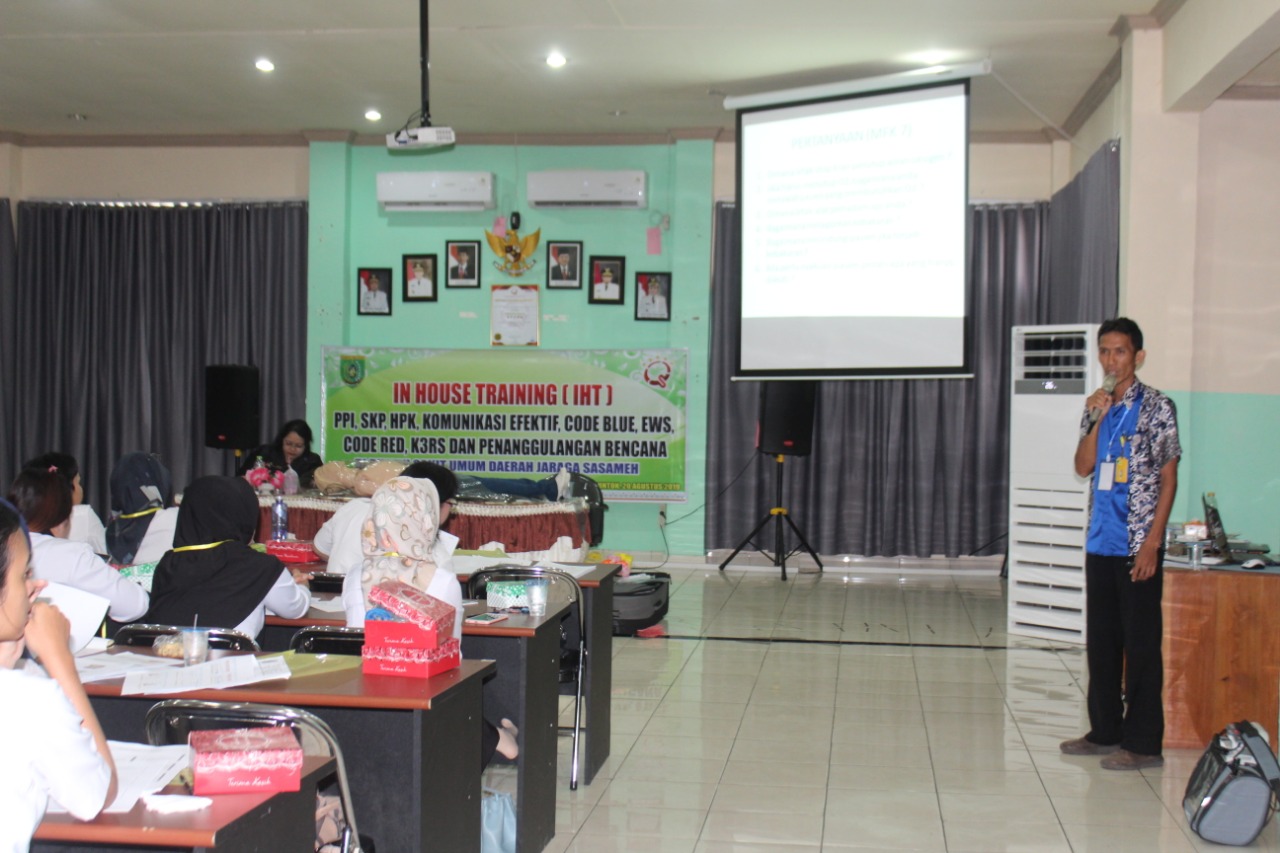 Sebagai wujud dari pencapaian Akreditasi Paripurna RSUD Jaraga Sasameh untuk terus mengembangkan SDM, IHT merupakan wujud implementasi pengembangan SDM, salah satunya minimal 80% dari pegawai RSUD sebagaimana telah terpapar IHT PPI, SKP, HPK, Komunikasi Efektif, Code Blue, EWS, Code Red, K3RS dan Penanggulangan Bencana.