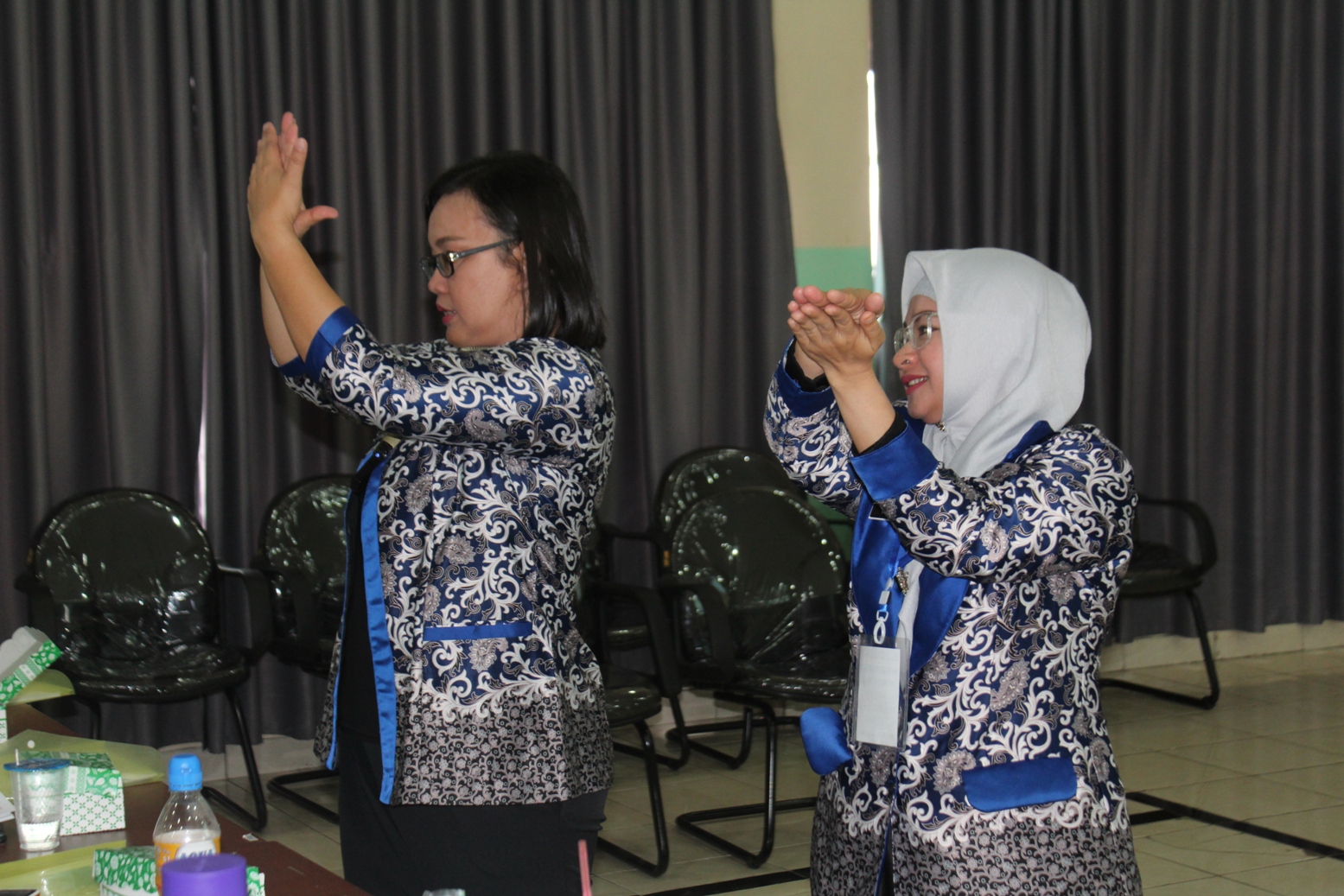 Peragaan 6 langkah cuci tangan langsung diikuti oleh seluruh peserta IHT PPI, SKP, HPK, Komunikasi Efektif, Code Blue, EWS, Code Red, K3RS dan Penanggulangan Bencana, sebagai salah satu materi dari PPI, diharapkan seluruh peserta dapat menguasai 5 momen dan 6 langkah cuci tangan menurut WHO.