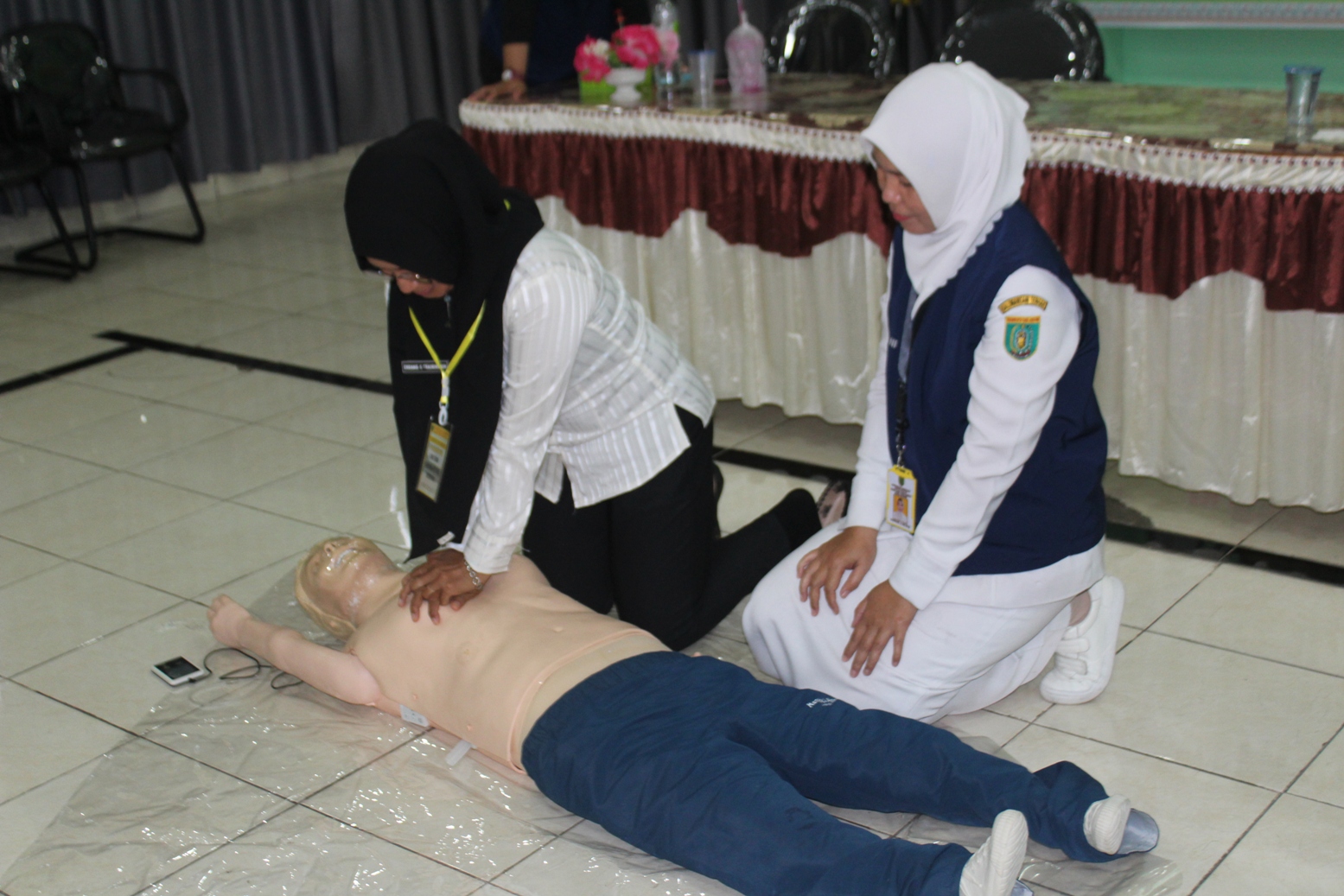 Salah satu sub materi dari Code Blue adalah BHD ( Bantuan Hidup Dasar ), Materi ini juga dipraktekkan BHD oleh Tim Code Blue RSUD Jaraga Sasameh yang diketuai oleh dr. Julia Nengsi