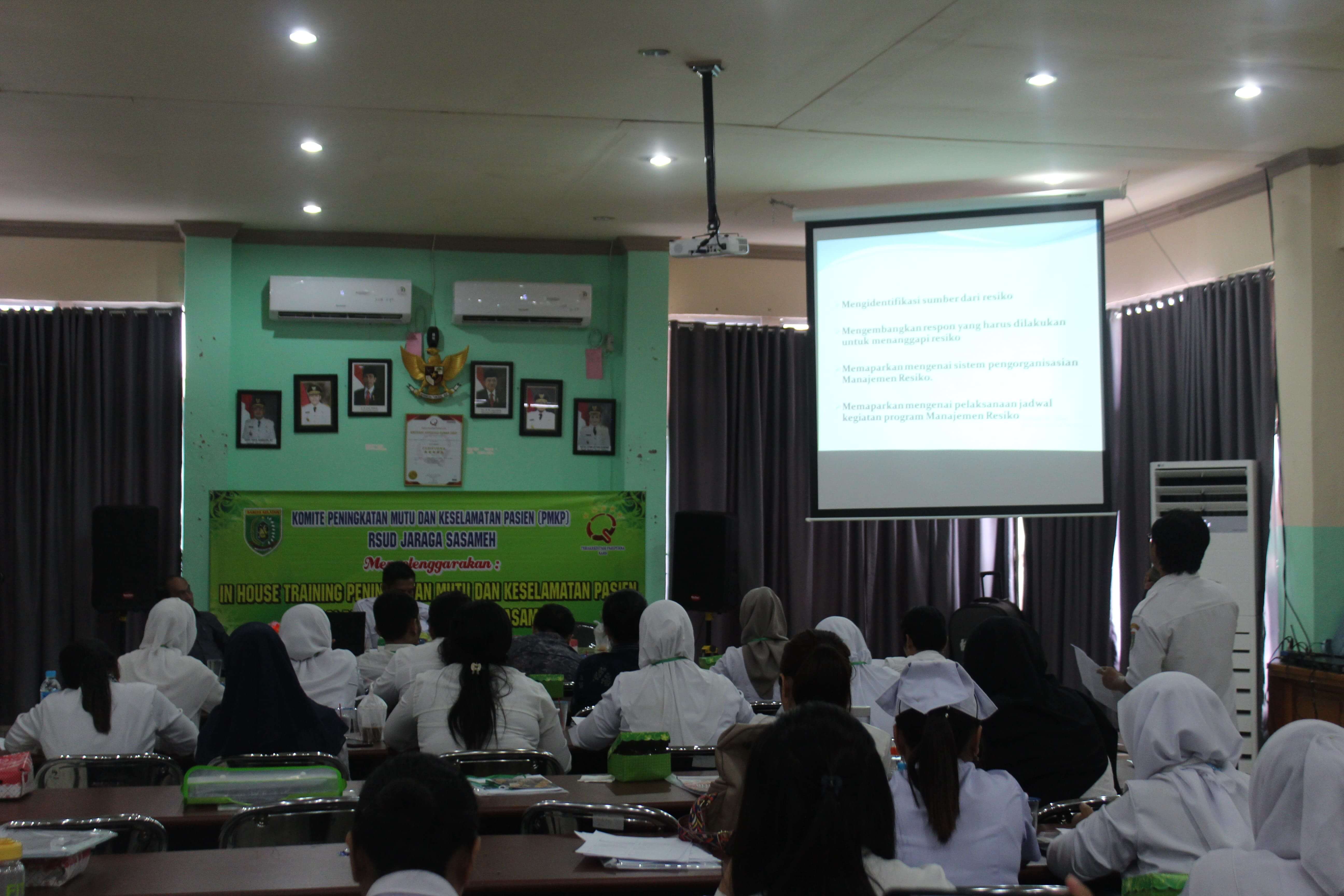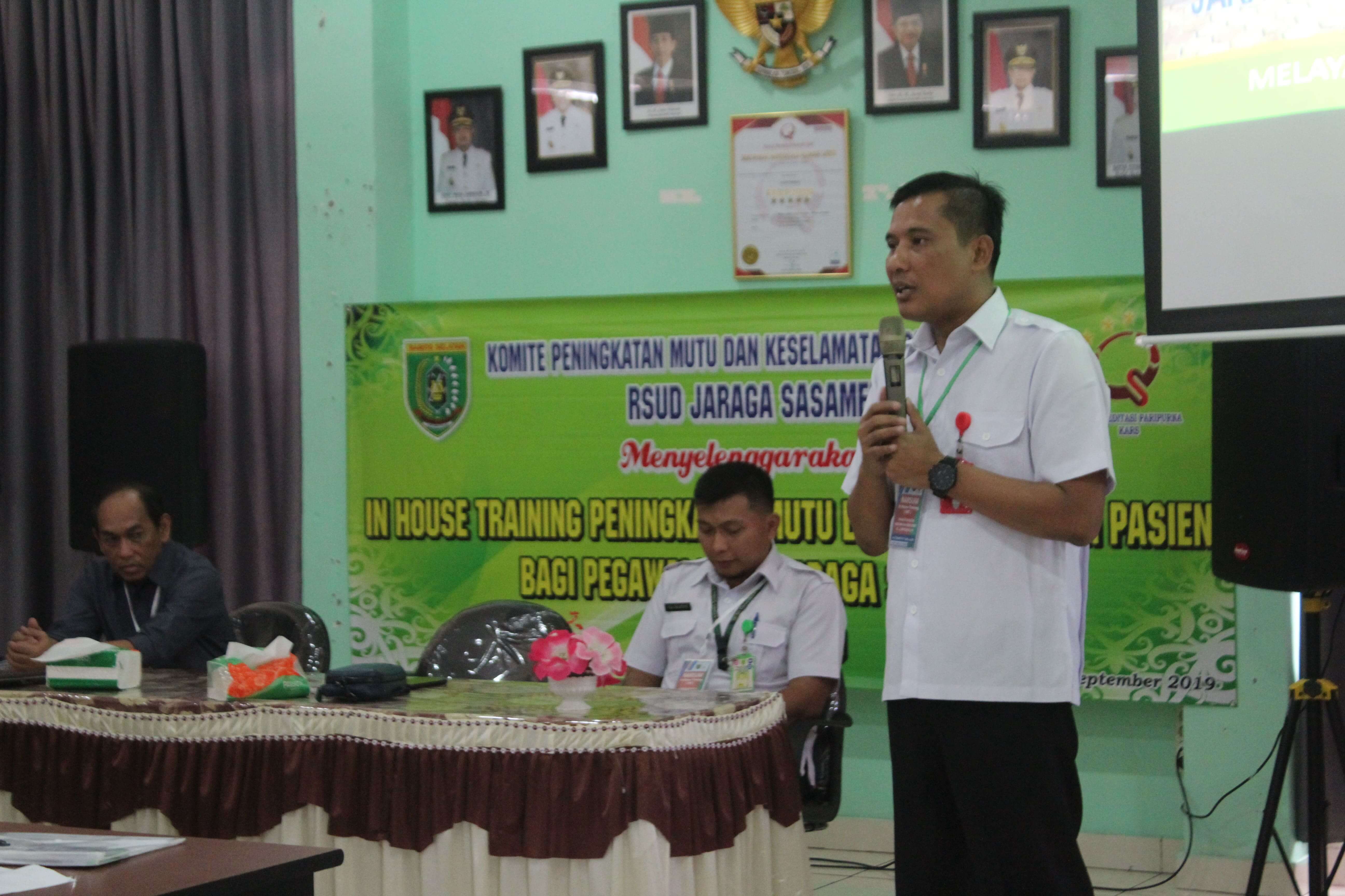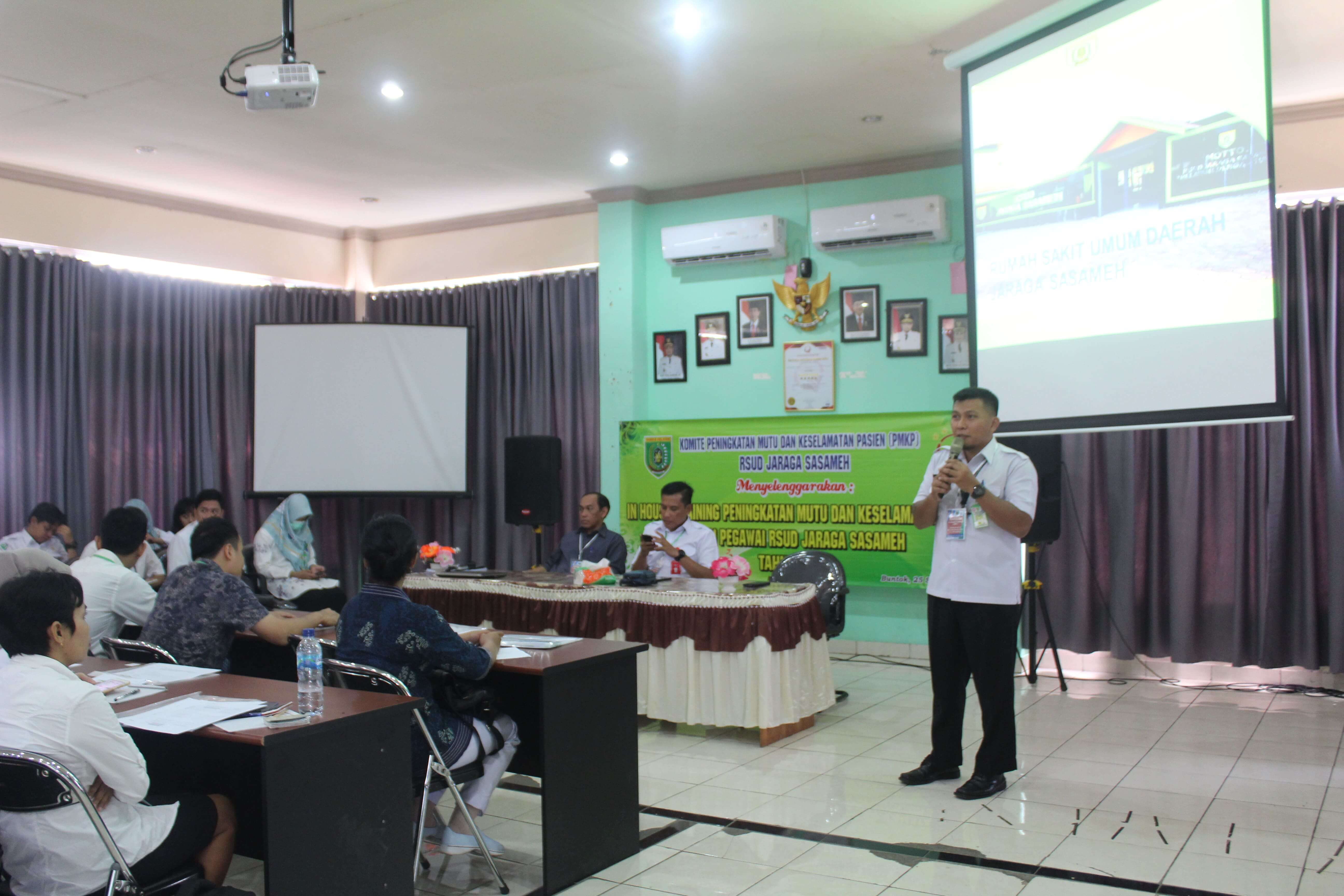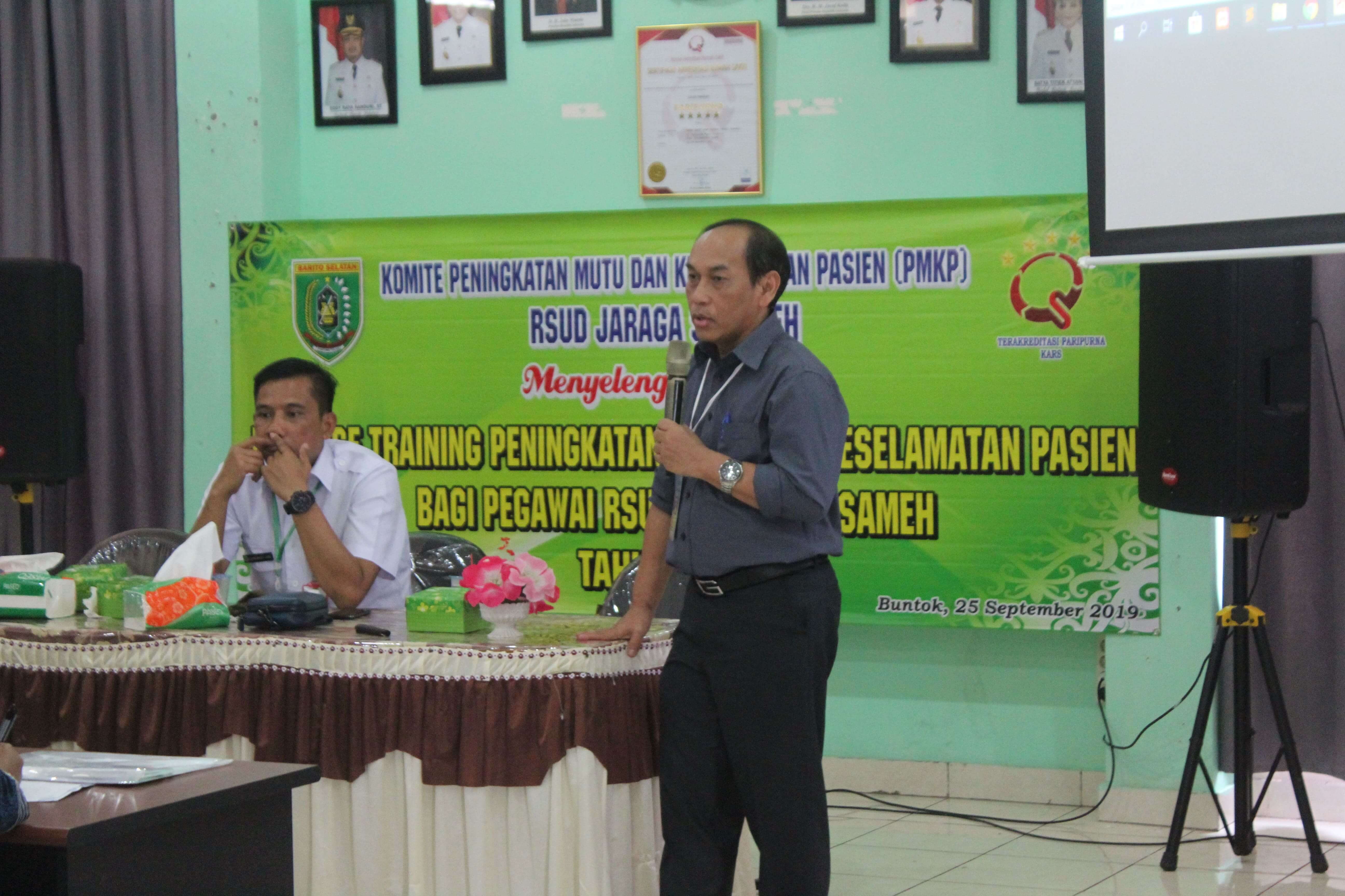 Buntok, 25 September 2019, tepatnya di Aula Isa Pakat RSUD Jaraga Sasameh. Komite Peningkatan Mutu dan Keselamatan pasien ( PMKP ) RSUD Jaraga Sasameh menyelenggarakan In House Training Peningkatan Mutu dan Keselamatan Pasien ( PMKP ) kepada Karyawan RSUD Jaraga Sasameh.