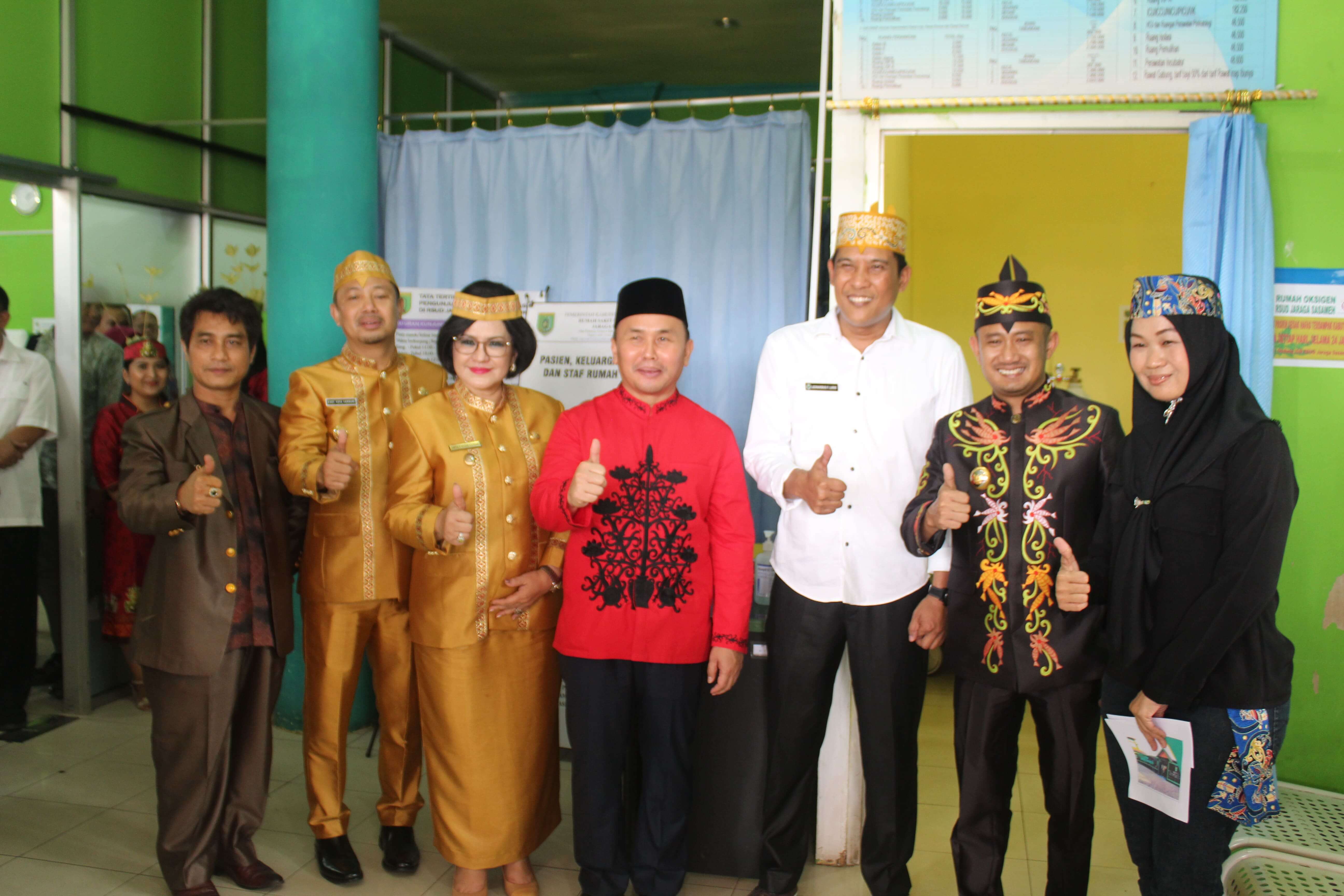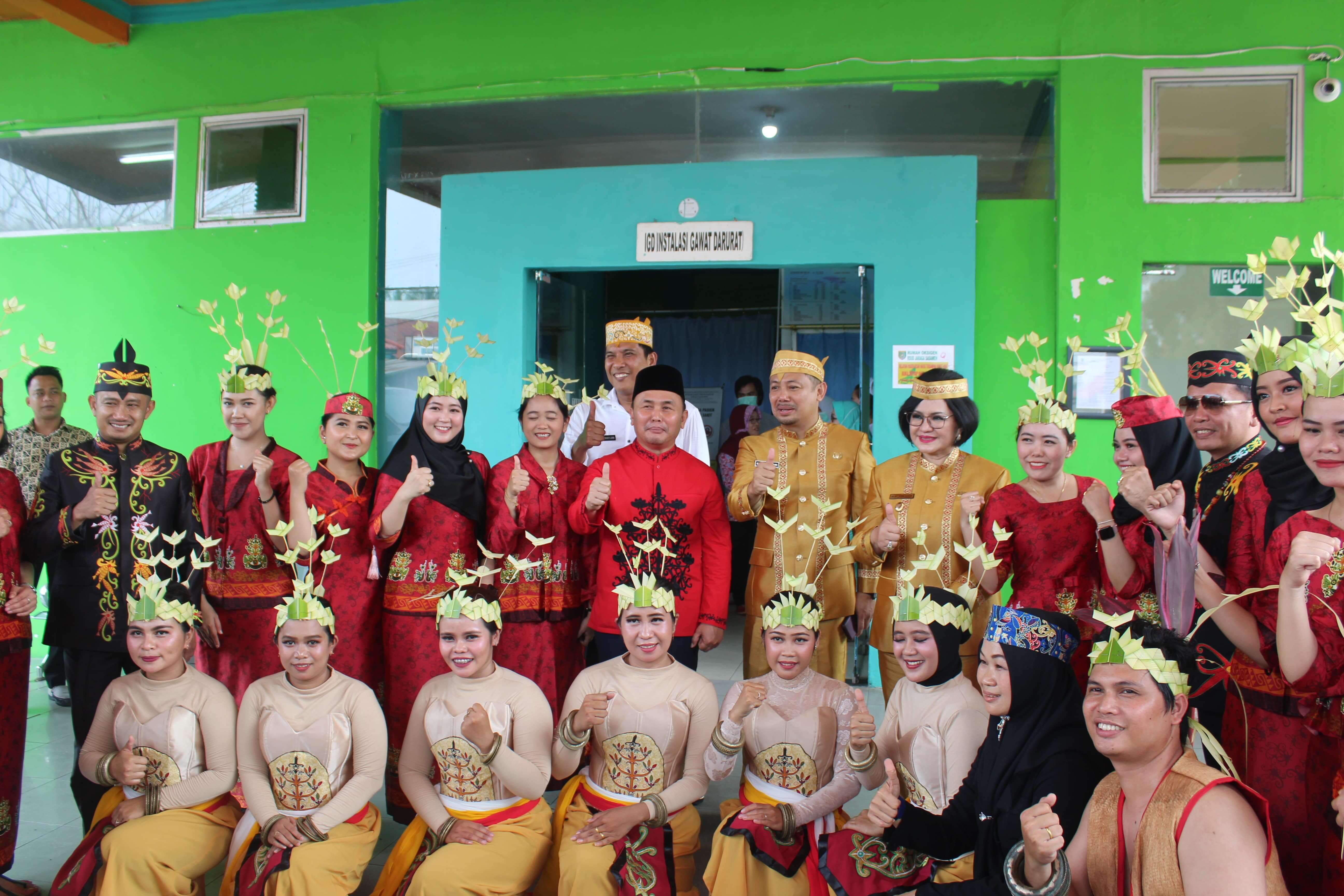 Foto Bersama Gubernur Kal-teng, Walikota palangkaraya, Bupati dan wakil Bupati dengan Direktur RSUD Jaraga Sasameh serta Penari dari RSUD Jaraga Sasameh