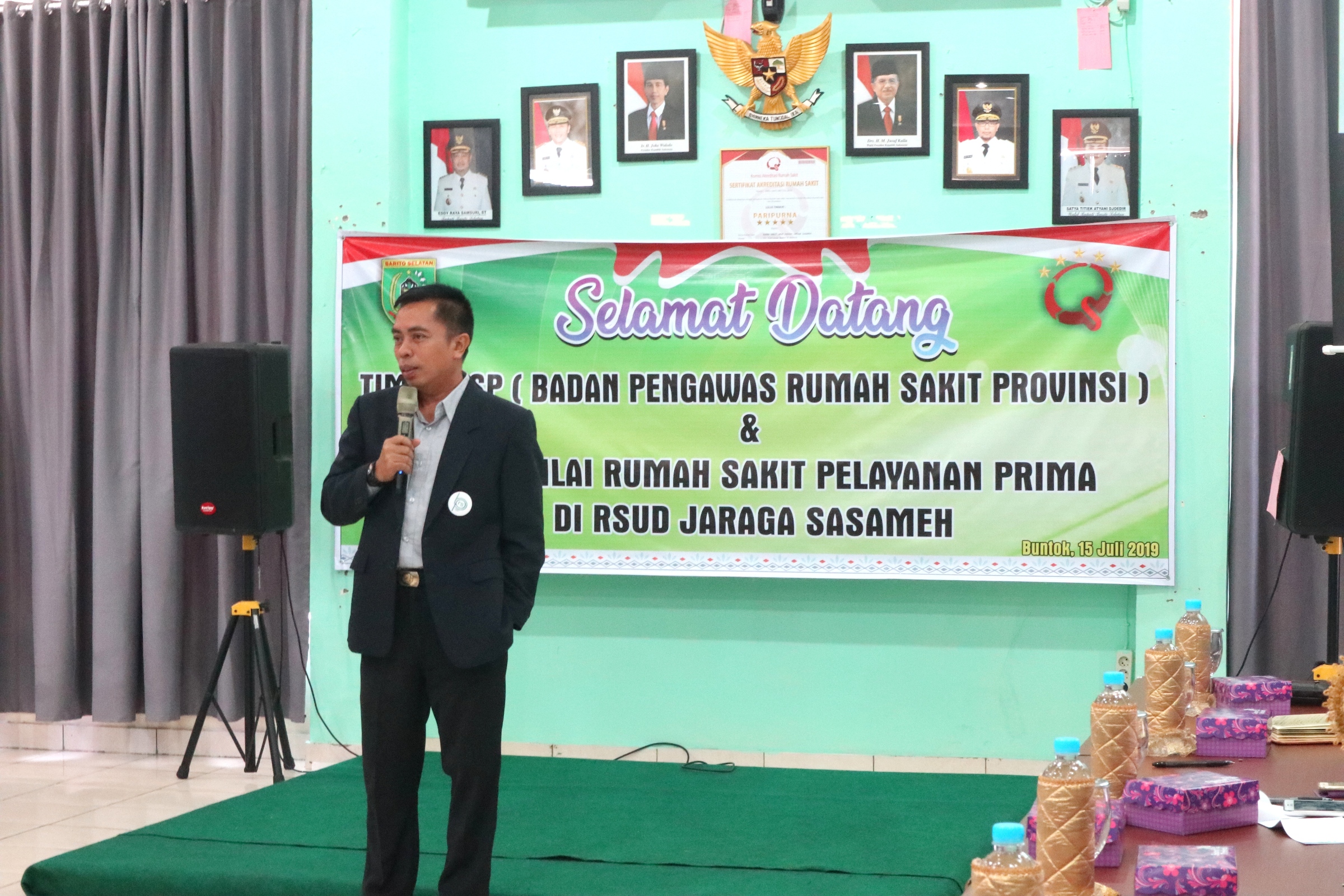Ketua TIM BPRS sangat berterimakasih atas sambutan yang hangat oleh RSUD Jaraga Sasameh yang datang secara bersamaan dengan Tim BPRSP, Tim penilai Rumah Sakit Pelayanan Prima kembali melakukan penilaian kepada RSUD Jaraga Sasameh memantau perkembangan terkini dan memberikan nilai terbaru , yang diketahui bersama RSUD Jaraga Sasameh telah memperoleh gelar terbaik ketiga pelayanan prima se Kalimantan Tengah pada tahun 2018. Kunjungan kali ini bertujuan untuk penilaian pelayanan prima di 2019.